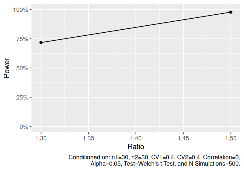 #> n1 n2 ratio cv1 cv2 cor distribution nsims test alpha power