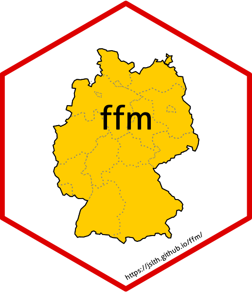 {ffm} is an R package that provides quick and easy access to data from the geodata center of Germany’s Federal Agency for Cartography and Geodesy (BKG). The BKG is the official provider of spatial data in Germany and provides quite a few datasets as open data. These data range from administrative areas to earth observation data and are often crucial when working with regional statistics from Germany. Part of the motivation for this package stems from frustration when working areal identifiers returned by packages like {wiesbaden} or {restatis} and not being able to quickly link them to their spatial representations.
